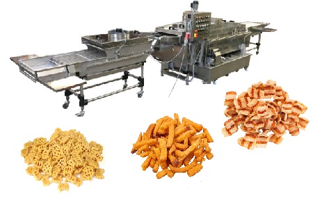 Автоматическая фритюрница, оптимизированная для производства закусочных продуктов и гранул, подходящая для почасовой производительности около 200-250 кг / ч.