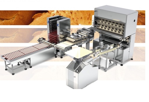 Автоматическая установка разгрузки продуктов на протвини с накопителем противней