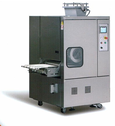 Тесто нежно обрабатывается, благодаря специальной системе всасывания и устройству регулировки прессования, поэтому в камеру деления попадает точное количество теста. После деления теста, тестовые заготовки поступают в барабан округления.