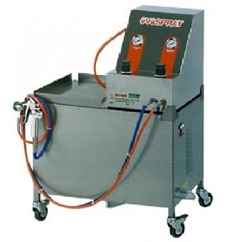 Машина предназначена для смазывания хлебобулочных и кондитерских изделий яйцом или белком, может также применяться для смазывания форм и противней маслом. Продукт (белок, гомогенизированное яйцо, жидкое масло) берется непосредственно из контейнера и под давлением подается в пистолет. Сжатый воздух и продукт для распыления смешиваются в диспенсере пистолета и одновременно распыляются. Лучшего результата можно достичь при отдельном регулировании давления воздуха и жидкости.