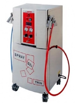 Модели Spray Gel Twin оснащены двумя пистолетами, которые могут использоваться двумя операторами одновременно. Spray Gel Twin / C - предназначена для работы с горячими массами - имеет два пистолета с шлангами красного цвета, т.е. возможна одновременная работа с разными желейными массами. Spray Gel Twin / F - предназначена для работы с горячими и холодными массами - имеет два пистолета: один с шлангом красного цвета, второй - синего цвета, т.е. возможна одновременная работа с желейной массой с одной стороны и с сиропом (или ликером) с другой.