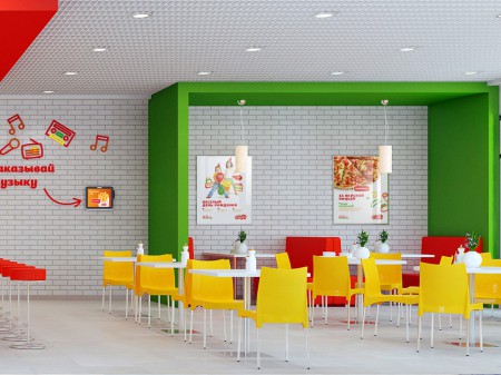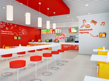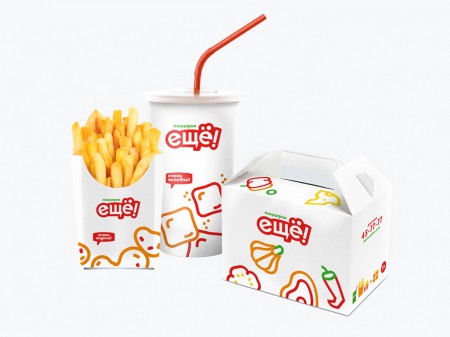 Перемены начинаются с идеи: «Аппетит к жизни» — новое позиционирование, которое изменит оформление и принципы работы сети. Теперь задача-максимум для каждой пиццерии «Ещё!» — менять городской ландшафт в зоне присутствия, создавая островки хорошего настроения. На уровне дизайна позиционирование подкреплено яркими акцентами в фирменном стиле, аксессуарах, интерьере и фасадных решениях.